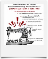 Специальность 6-05-0212-01 «Дизайн костюма и текстиля» обеспечивает получение квалификации «дизайнер». Это специалист, который объединяет навыки художника, модельера-конструктора и технолога.