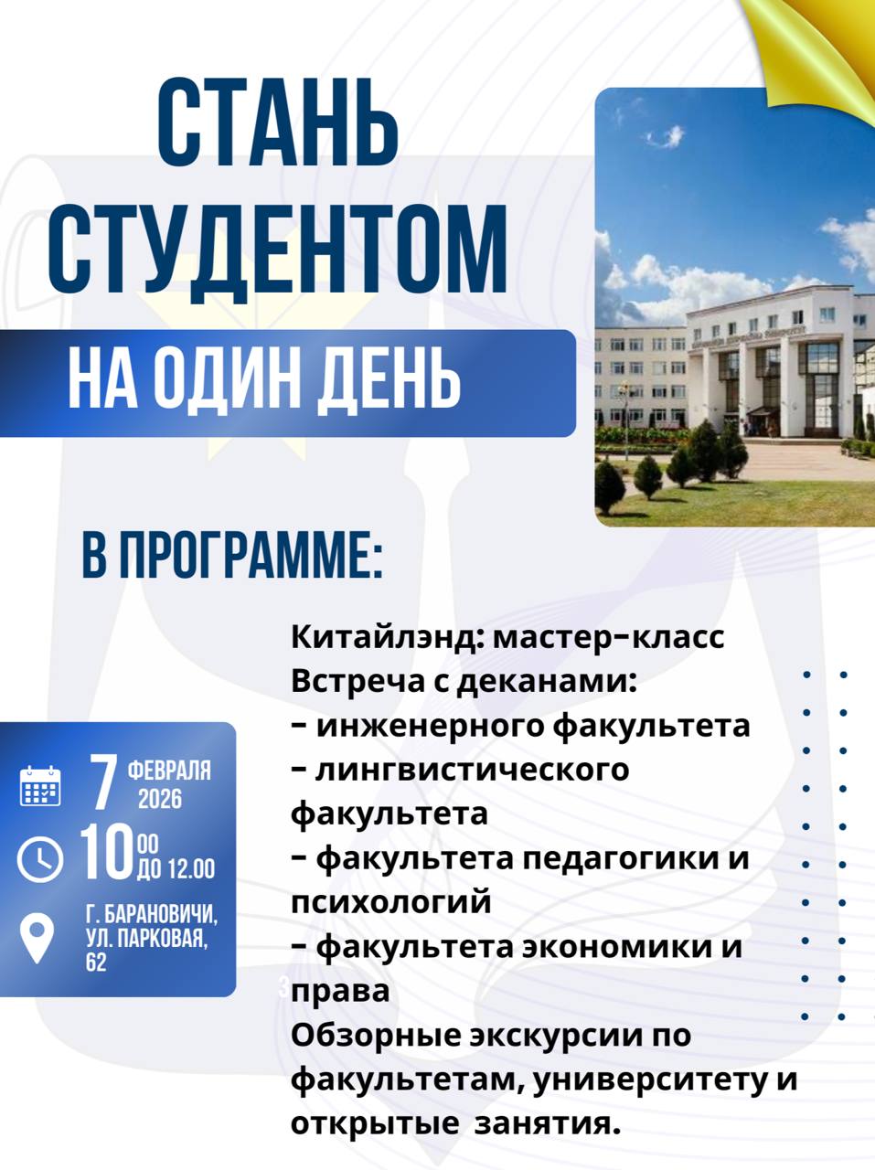 Есть желание почувствовать себя настоящим студентом и узнать, как проходит студенческая жизнь в Барановичском государственном университете?