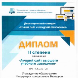 Подведены итоги дистанционного конкурса «Лучший сайт учреждения образования». Сайт Международного университета «МИТСО» удостоен диплома II степени в номинации «Лучший сайт высшего учебного заведения».